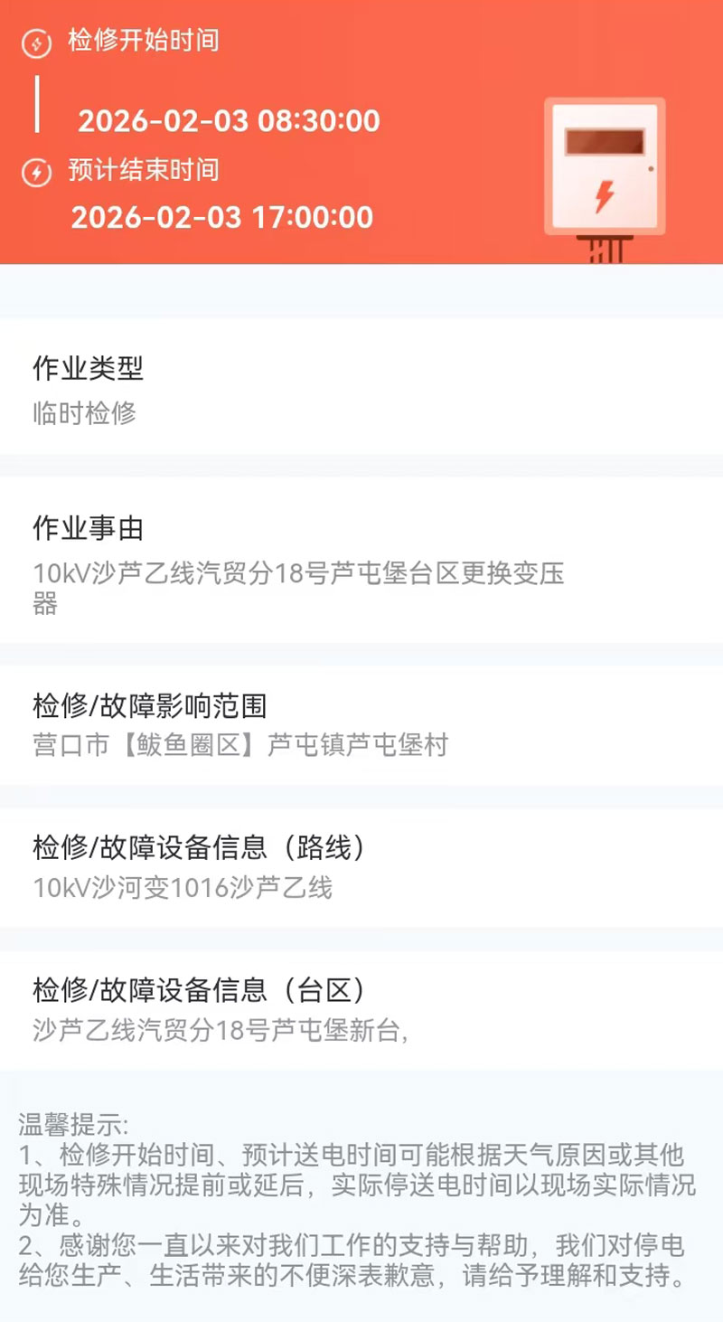 2026年02月03日 老边区电网检修公告